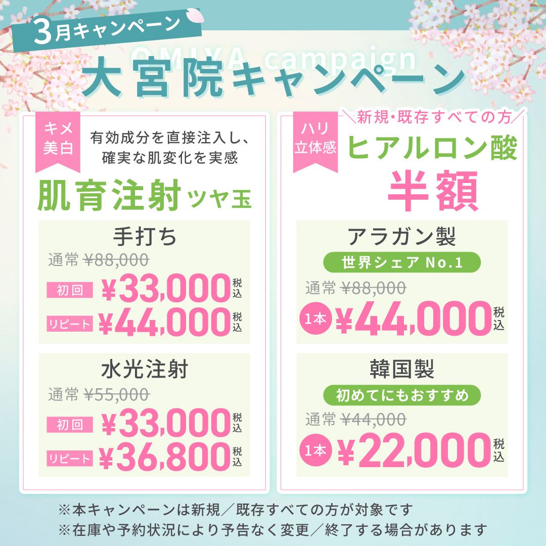 - 注射のため傷跡はそこまで目立ちませんが、体質によっては注射部位の内出血や周辺に赤みが出ることがあります。また、注入後稀にアレルギー症状を起こす可能性があります。
