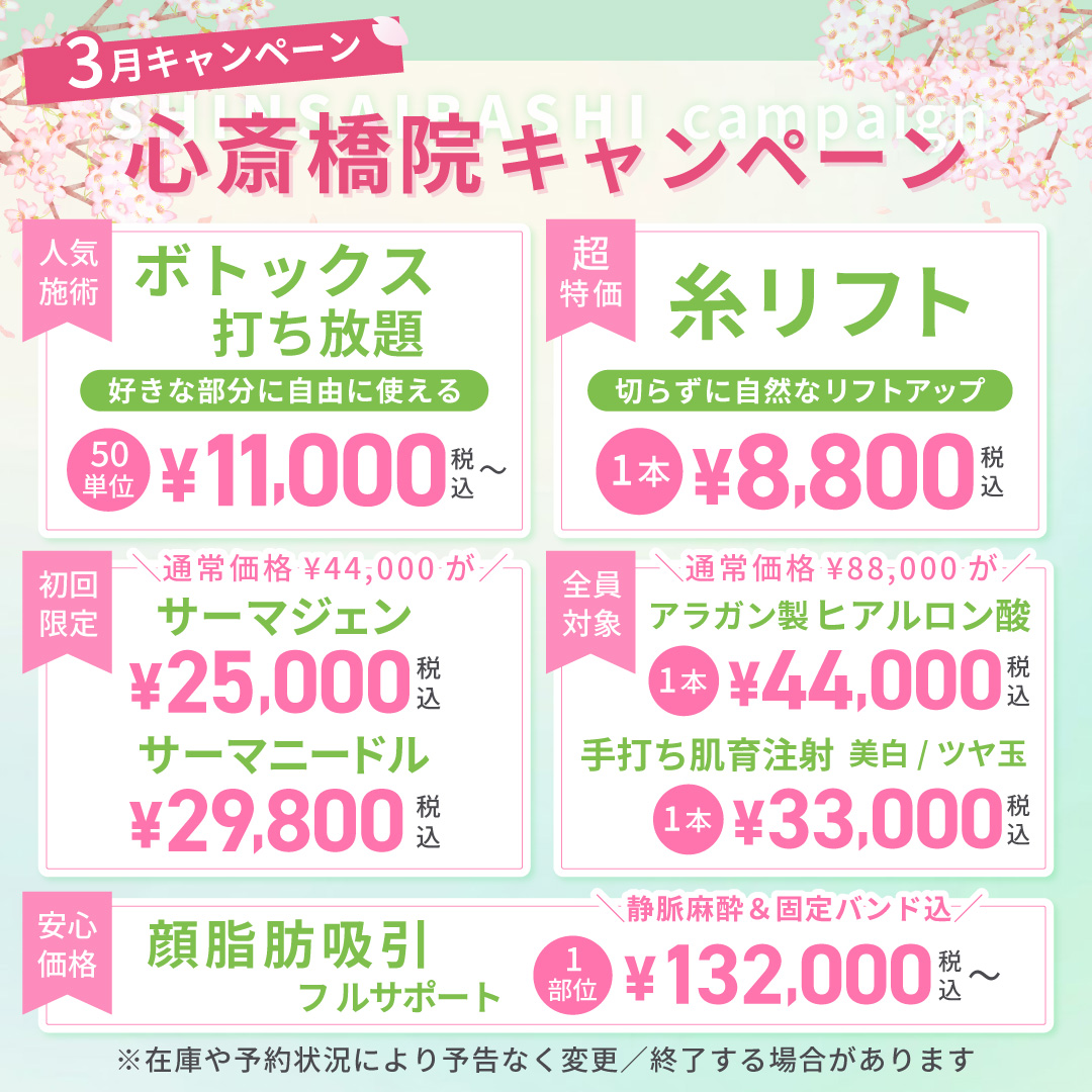 ボトックスの料金Price